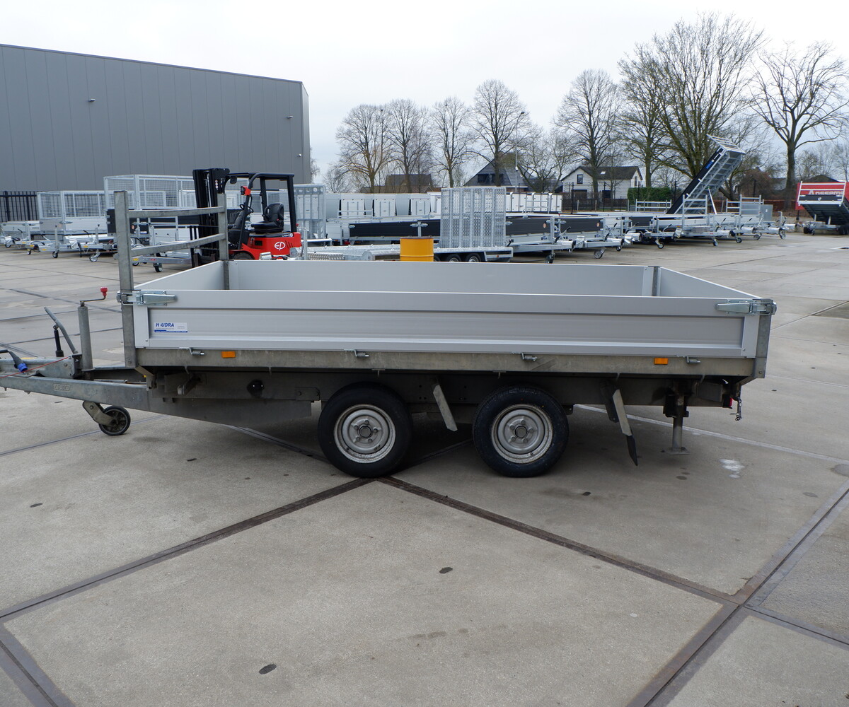 Met een laadbak van 330x185cm biedt deze kipper volop ruimte voor zand, puin, grond, machines of andere materialen. Dankzij het driezijdige kipsysteem stort u eenvoudig naar achteren én naar beide zijkanten.