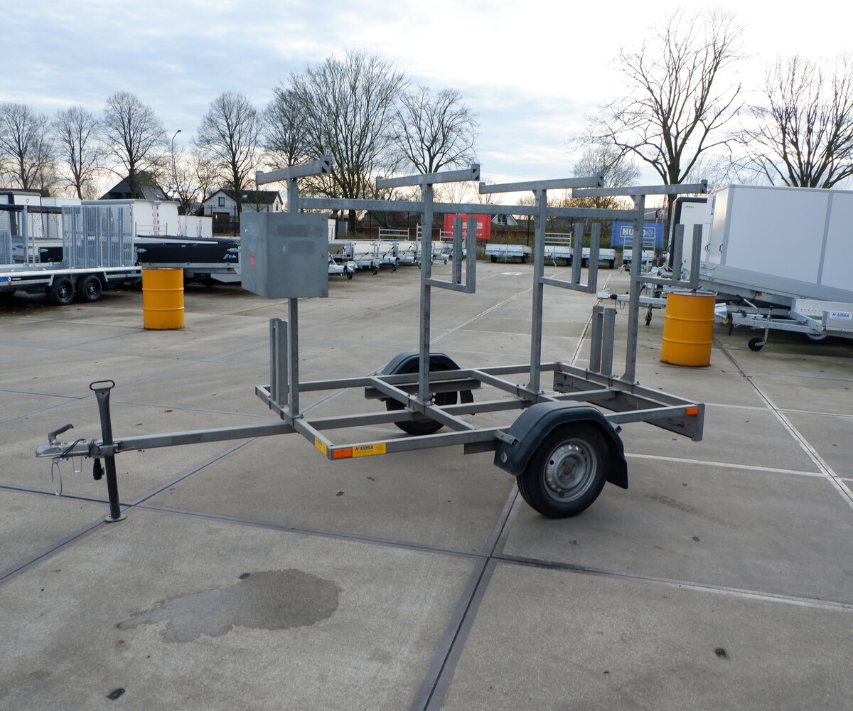 Deze tweedehands steigeraanhanger is een praktische en degelijke oplossing voor het vervoeren van steigermateriaal. Met een laadruimte van 250x155cm en een toegestaan totaalgewicht van 750 kg is deze aanhanger ideaal voor zowel professionele gebruikers als particulieren.
