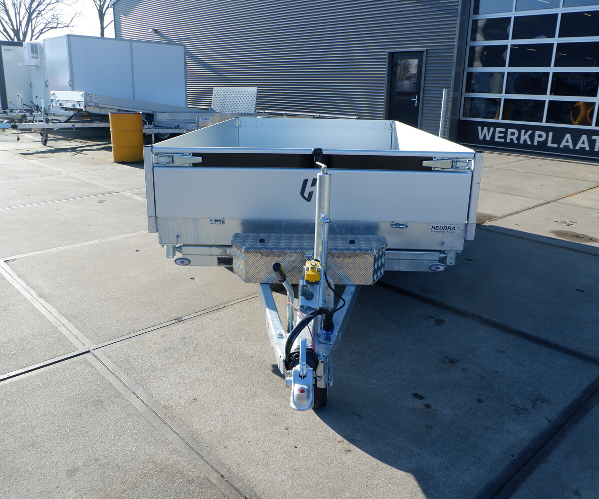 De sterke bindhaken zijn mooi verzonken in de rand van de laadvloer en geschikt voor lading tot 950kg. Ook de sluitingen zijn geïntegreerd in de borden, waardoor ze beter beschermd zijn. Ten slotte wordt de kipper standaard geleverd met 185/60R12 zwarte velgen, sledes om rijplaten in op te bergen en een U-profiel onder het achterbord om rijplaten achter te haken. Daarnaast kunt u kiezen uit een gaffelslot, gaasnet of gaasdoek, opzetborden of loofrekken, zodat deze aanhangwagen perfect aansluit bij uw wensen en behoeften.