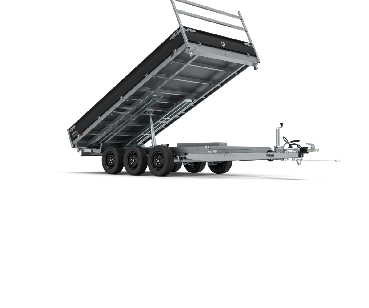 De sterke bindhaken zijn mooi verzonken in de rand van de laadvloer en geschikt voor lading tot 950kg. Ook de sluitingen zijn geïntegreerd in de borden, waardoor ze beter beschermd zijn. Ten slotte wordt de kipper standaard geleverd met 185/60R12 zwarte velgen, sledes om rijplaten in op te bergen en een U-profiel onder het achterbord om rijplaten achter te haken. Daarnaast kunt u kiezen uit een gaffelslot, gaasnet of gaasdoek, opzetborden of loofrekken, zodat deze aanhangwagen perfect aansluit bij uw wensen en behoeften.