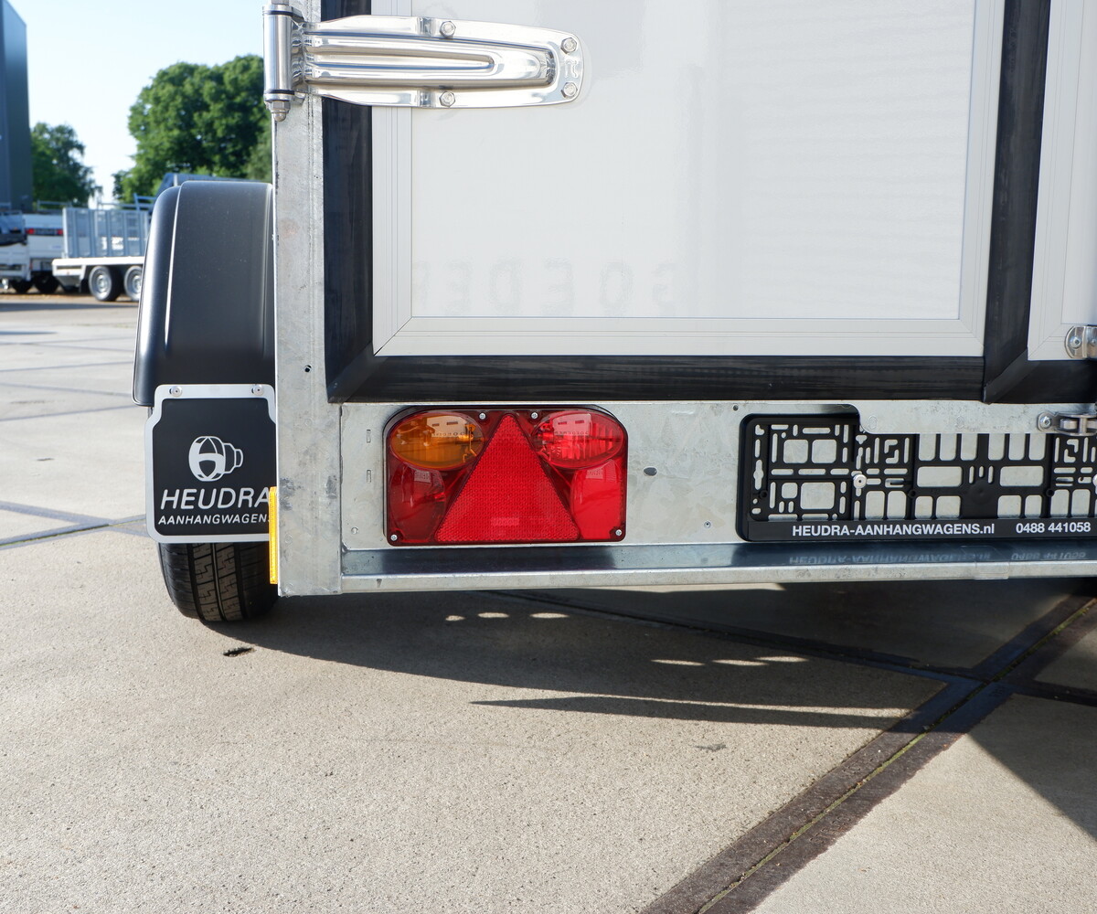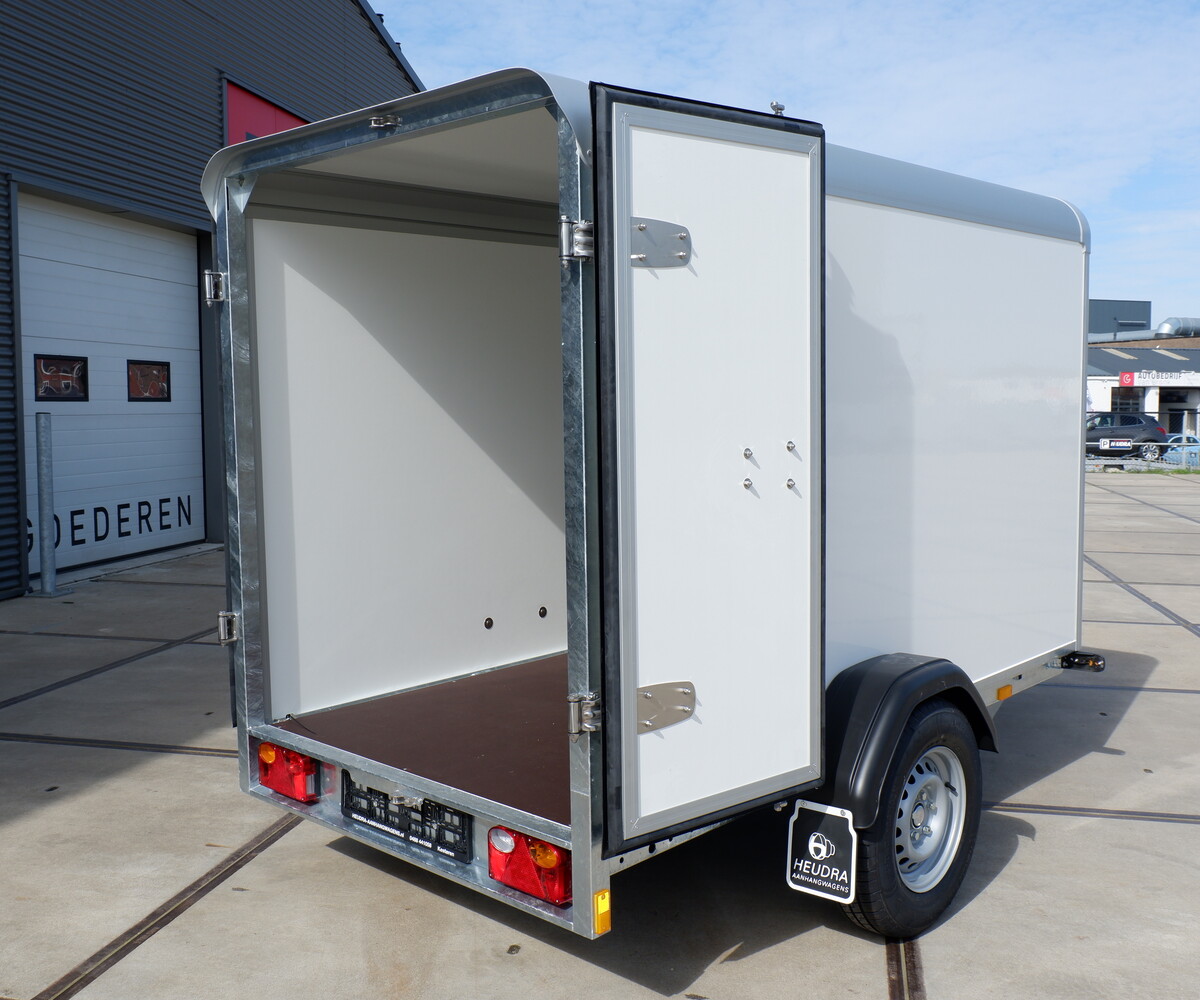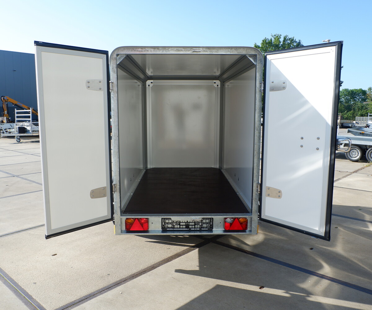 Standaard wordt de aanhangwagen geleverd met dubbele achterdeur, maar kan ook geleverd worden met een sterke oprijklep, met een draagvermogen van 600kg. Daarnaast is deze aanhangwagen ook te voorzien van bindrails, steunpoten en zijdeur. Dit model wordt nu standaard geleverd met zwarte velgen.
