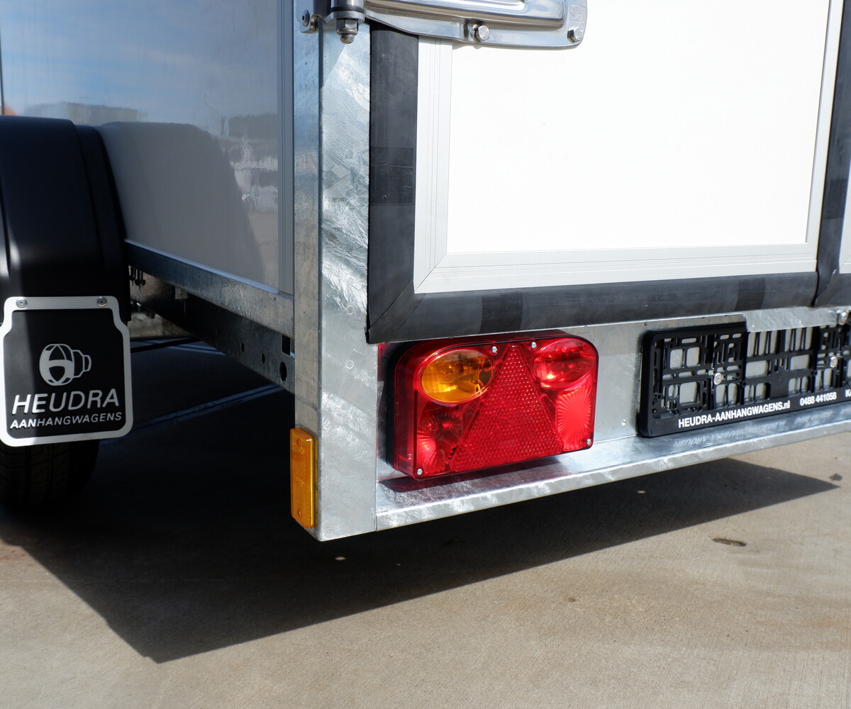 Standaard wordt de aanhangwagen geleverd met dubbele achterdeur, maar kan ook geleverd worden met een sterke oprijklep, met een draagvermogen van 600kg. Daarnaast is deze aanhangwagen ook te voorzien van bindrails, steunpoten en zijdeur.