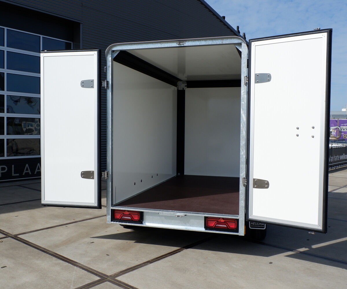 Standaard wordt de aanhangwagen geleverd met dubbele achterdeur, maar kan ook geleverd worden met een sterke oprijklep, met een draagvermogen van 600kg. Daarnaast is deze aanhangwagen ook te voorzien van bindrails, steunpoten en zijdeur.