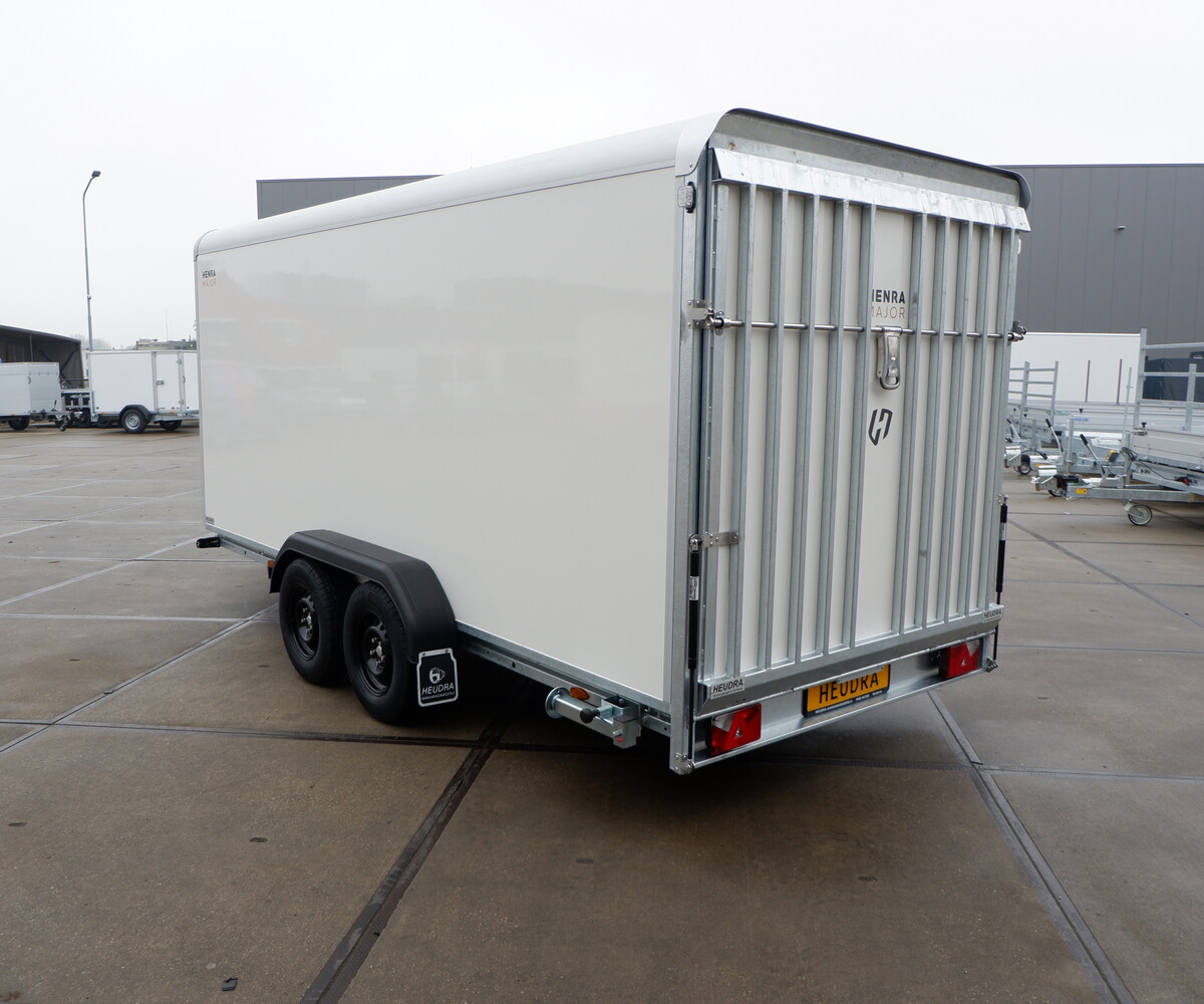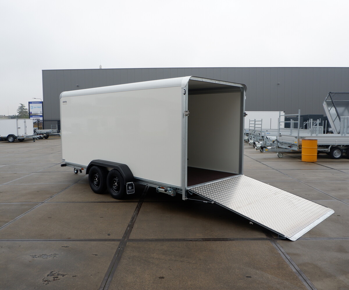 Standaard wordt de aanhangwagen geleverd met dubbele achterdeur, maar kan ook geleverd worden met een sterke oprijklep, met een draagvermogen van 600kg. Daarnaast is deze aanhangwagen ook te voorzien van bindrails, steunpoten en zijdeur.