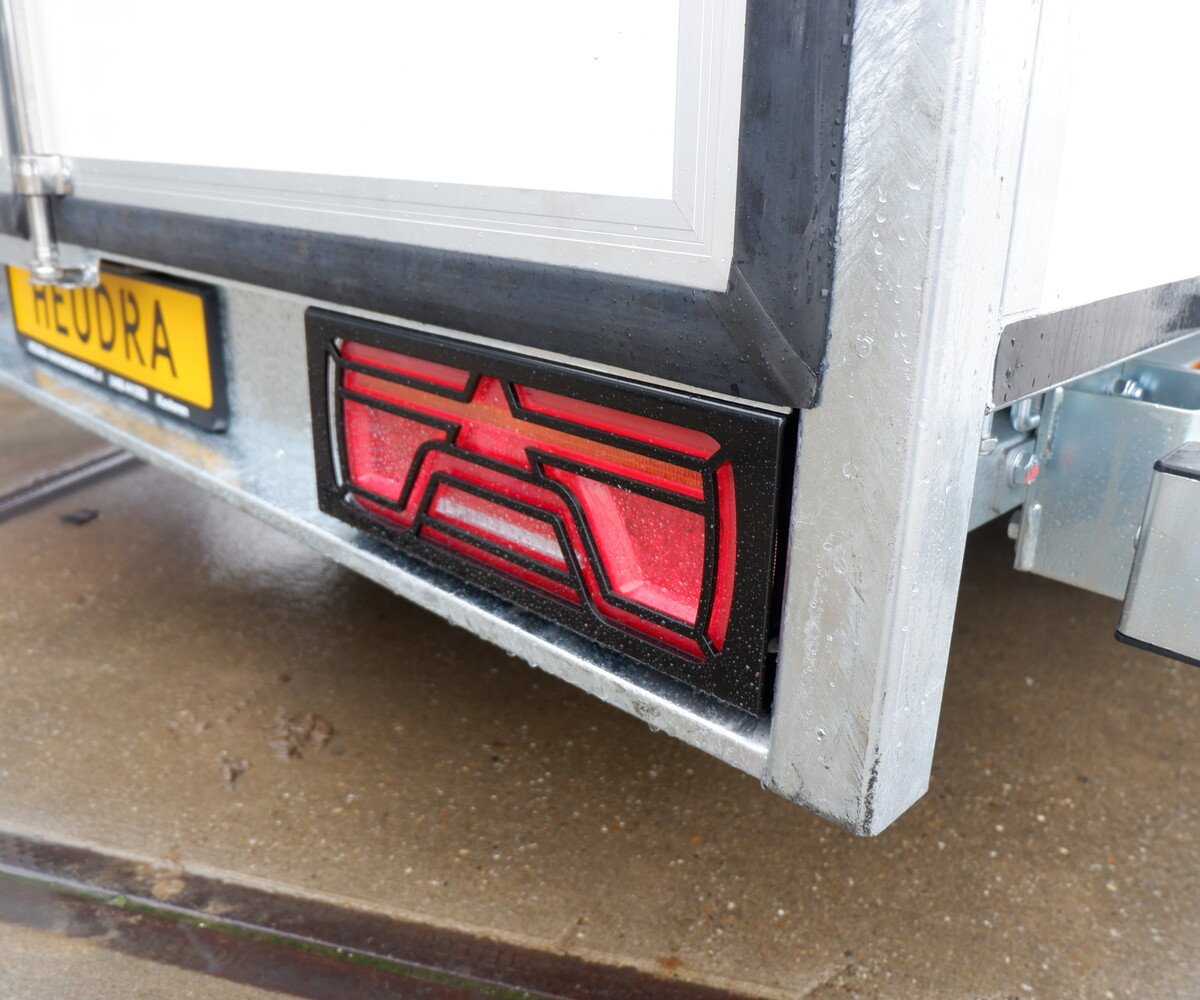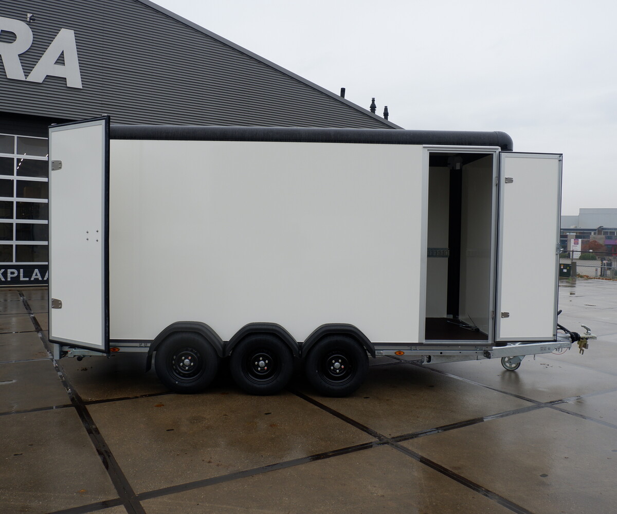 Standaard wordt de aanhangwagen geleverd met dubbele achterdeur, maar kan ook geleverd worden met een sterke oprijklep, met een draagvermogen van 600kg. Daarnaast is deze aanhangwagen ook te voorzien van bindrails, steunpoten en zijdeur.