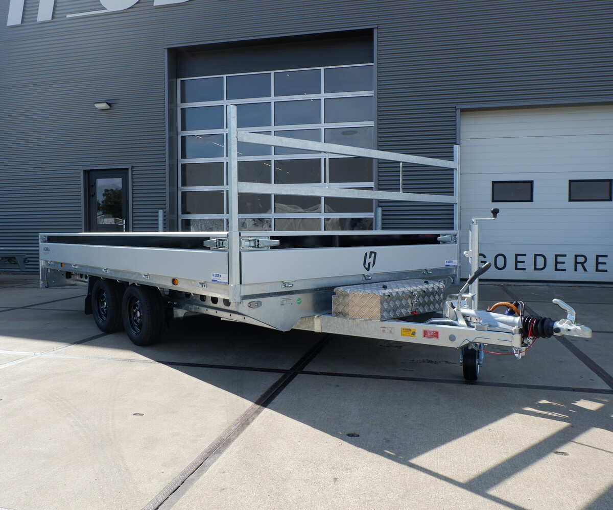 De plateauwagen op de foto is de Xpert uitvoering met onder andere een aluminium disselkist, zwart accent op de borden en dynamische achterlichten. Vraag voor meer informatie een offerte aan.