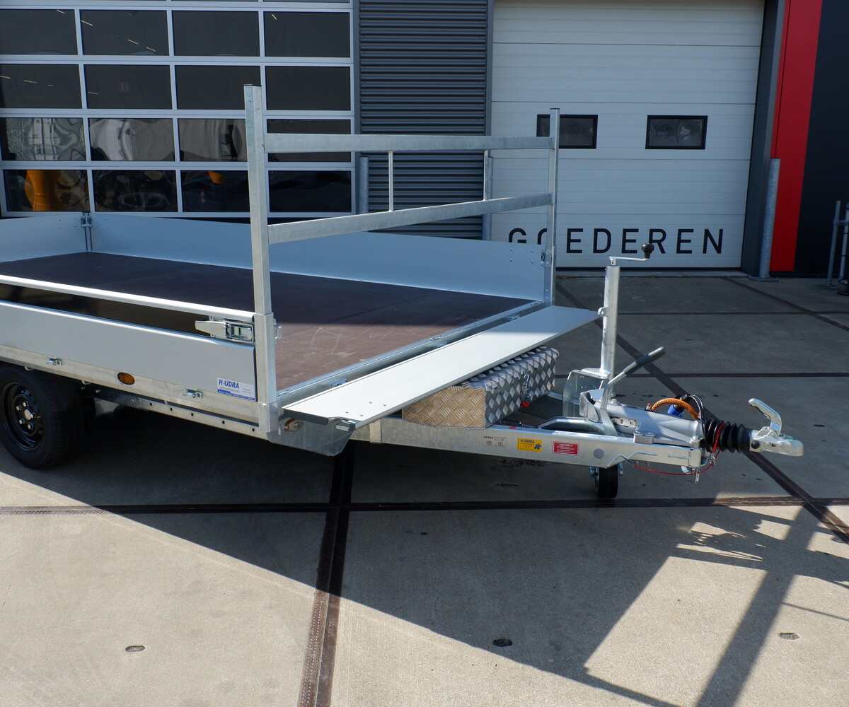Chat met onze expertsDe Henra plateauwagen is een sterke plateauwagen voor de professional. De plateauwagen heeft een laadvloer van multiplex van 18mm dik. Het sterke chassis bestaat uit veel dwarskokers voor een optimale ondersteuning van de laadvloer. De soepele en sterke spansluitingen zijn geïntegreerd in de aluminium borden van de aanhangwagen. De bindhaken zijn verzonken in de rand van het chassis. Onder de borden zitten touwhaken gelast aan het chassis.