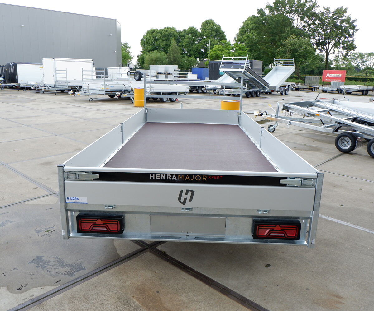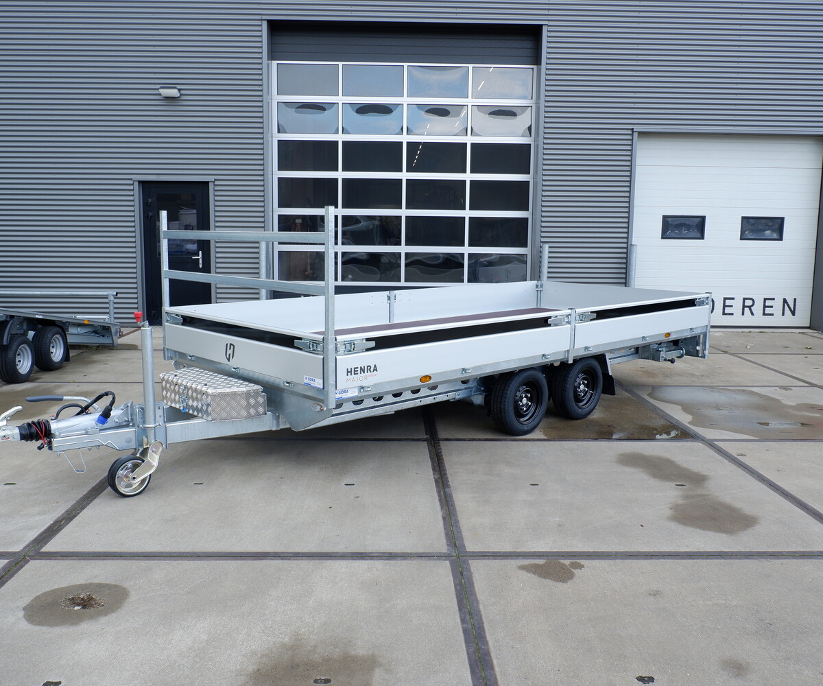 De Henra plateauwagen is standaard verlaagd, voorzien van 12 inch banden, voor een stabiele wegligging. Uniek is de Henra black edition optie met zwarte borden. De borden zijn dan geadoniseerd, waardoor de zwarte coating lang behouden blijft. Ten slotte wordt de kipper standaard geleverd met een (uitneembaar) voorrek van 110cm hoog. Daarnaast kunt u kiezen uit een anti-diefstalslot en een gaasnet of gaasdoek, zodat deze aanhangwagen perfect aansluit bij uw wensen en behoeften. De prijs is inclusief het voorrek.