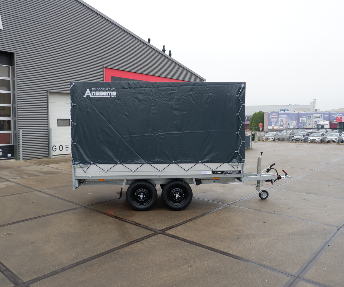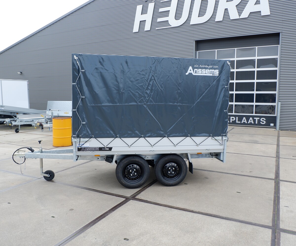 Huif voor de Anssems PLT Pro 305x150cm bakwagen. De huif heeft een afmeting van 305x150x165cm (lengte x breedte x hoogte). Wordt geleverd als bouwpakket, dat bestaat uit een stalen frame met aluminium planken, nethaken en gebruikershandleiding voor de opbouw van de huif (montage op aanvraag). De standaard kleur van de huif is antraciet, andere kleuren zijn mogelijk op aanvraag.