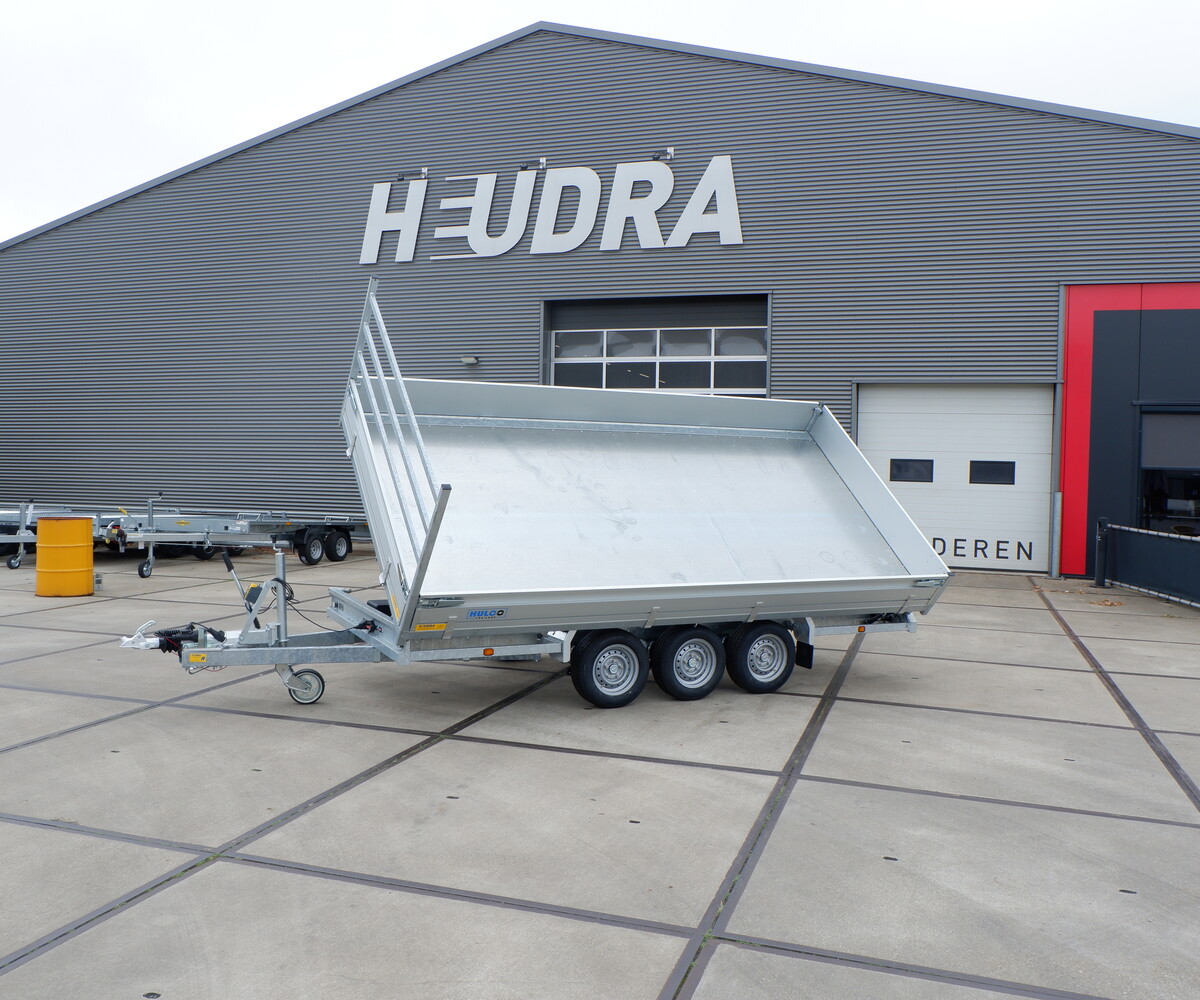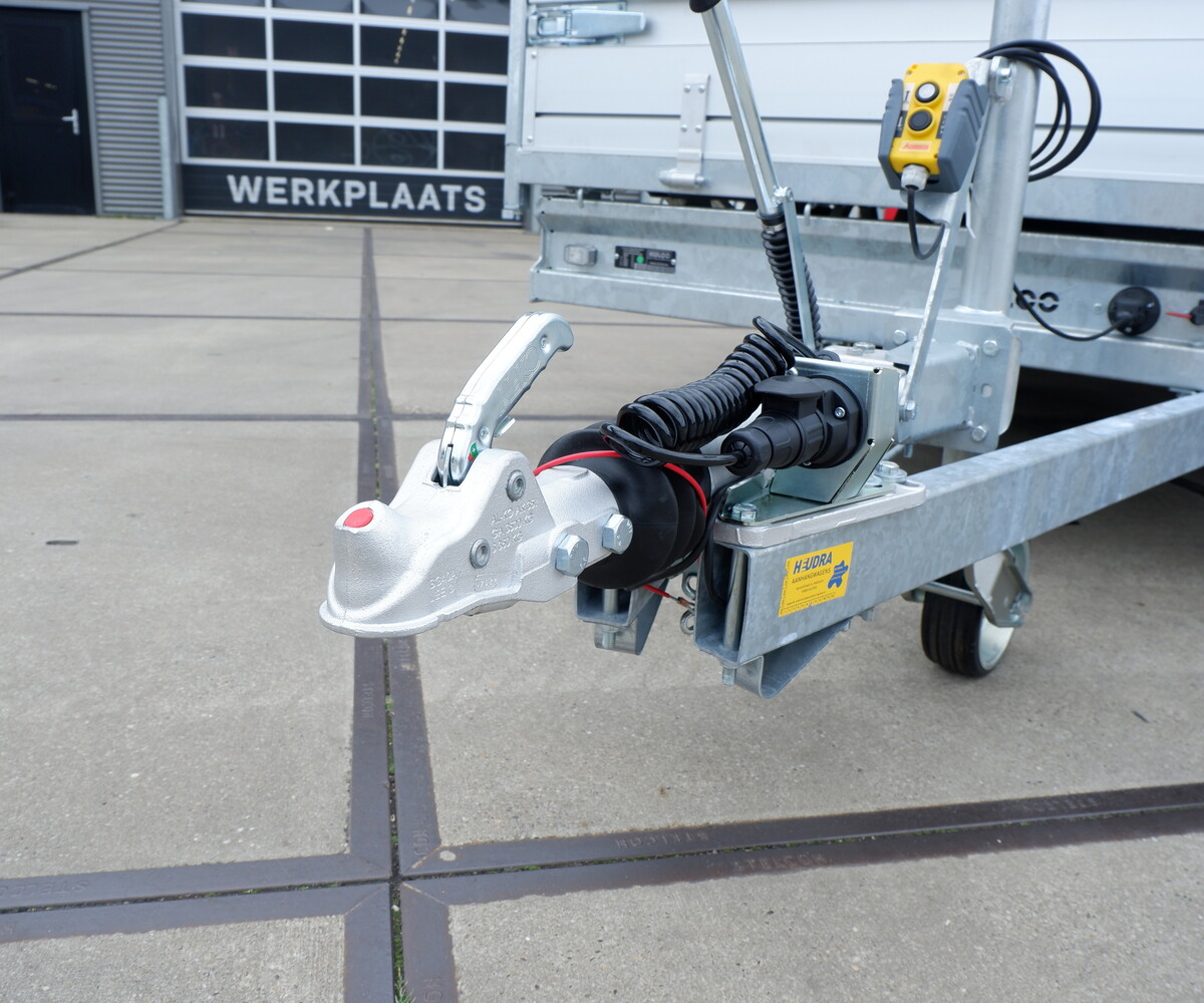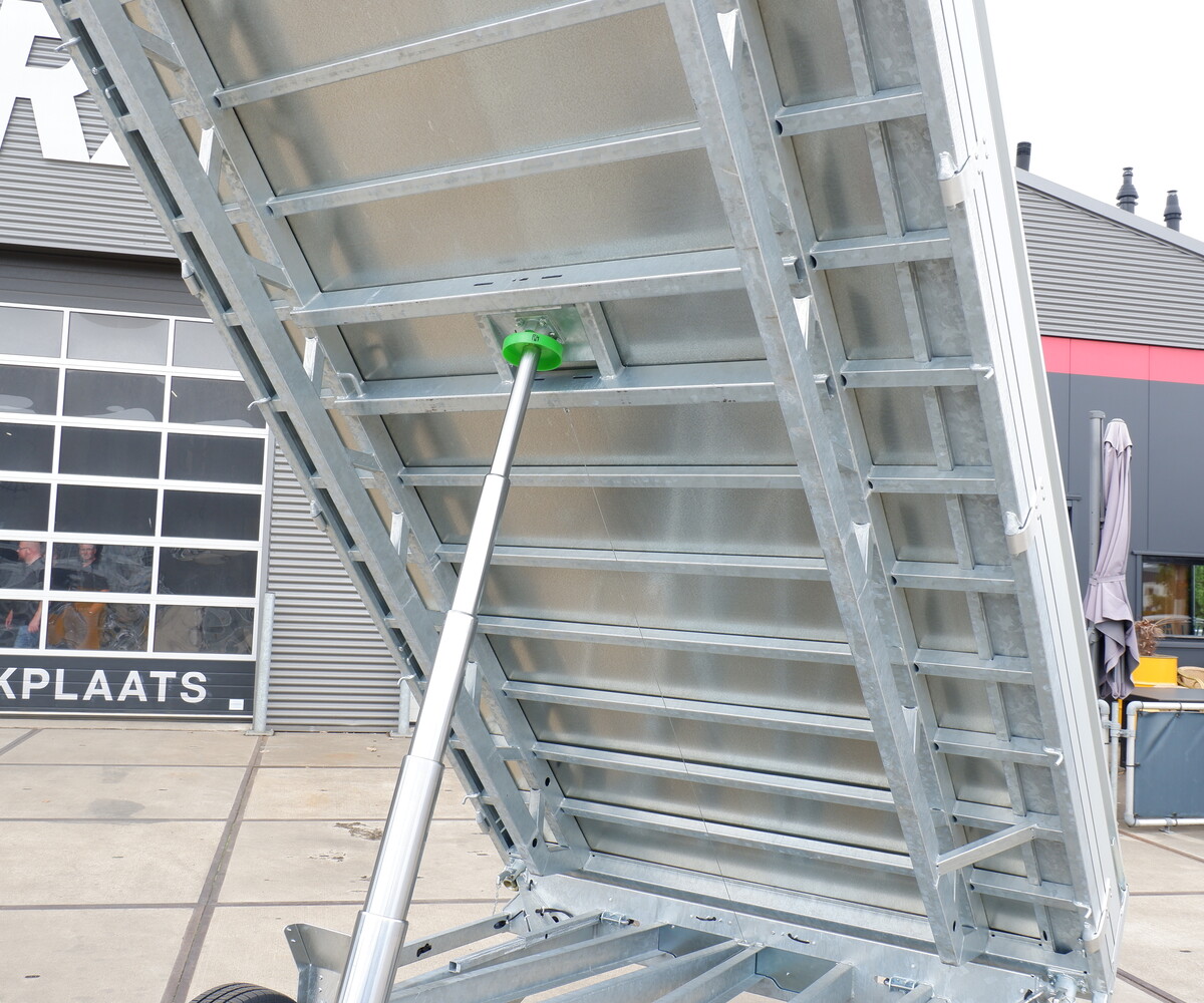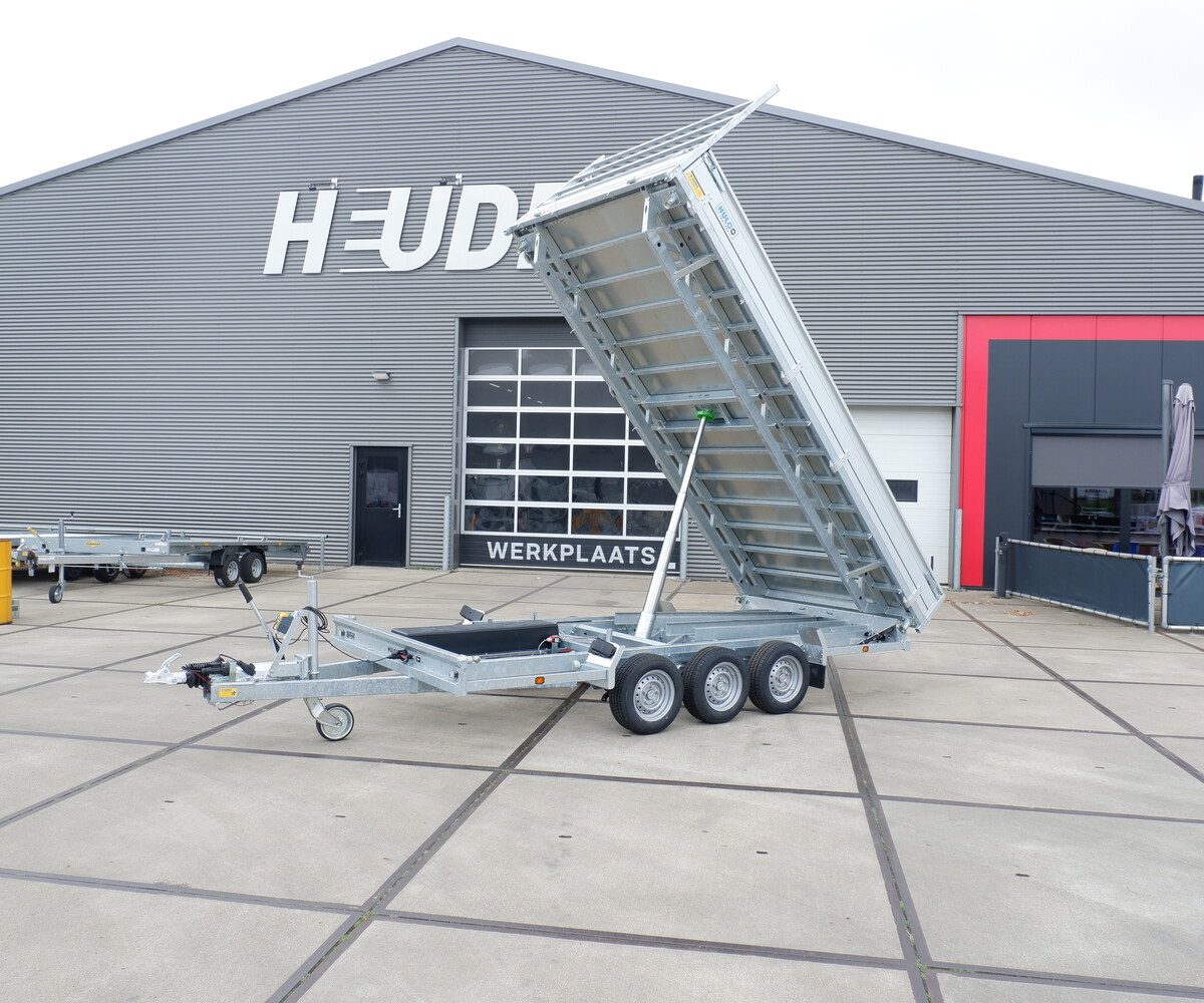 Deze kipper heeft een laadbak van 405x203cm, een totaalgewicht van 3500kg, en is uitgerust met tridemasssen (3x1800 kg), 12 inch hogedrukwielen en scharnierende aluminium borden. LED-verlichting rondom, inclusief een derde remlicht, zorgt voor extra veiligheid.