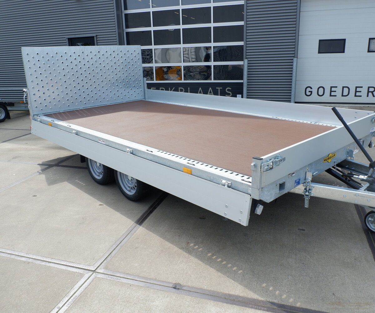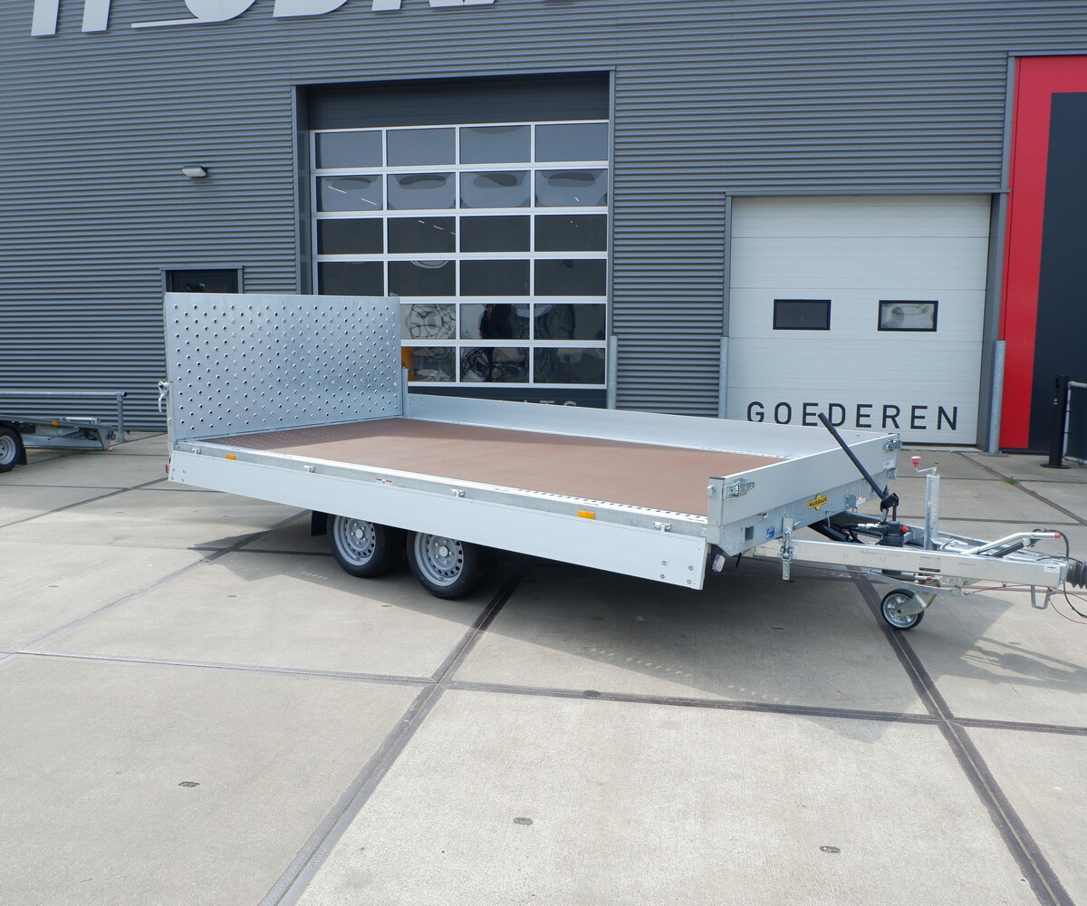 Chat met onze expertsVervoer uw voertuig veilig, makkelijk en comfortabel met deze compacte, kantelbare multitransporter van Humbaur. Een sterk gegalvaniseerd chassis zorgt voor een goede ondersteuning en veel rijcomfort. Doordat de multitransporter kantelbaar is (via dubbelwerkend hydraulisch systeem), heeft de multitransporter een enorm lage oprijhoek. Daardoor kunt u met bijna elk voertuig op de aanhangwagen rijden. De aanhangwagen heeft robuuste oprijklep van 90cm met speciale antislip-perforatie en gasveren.