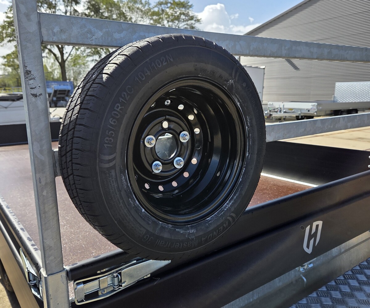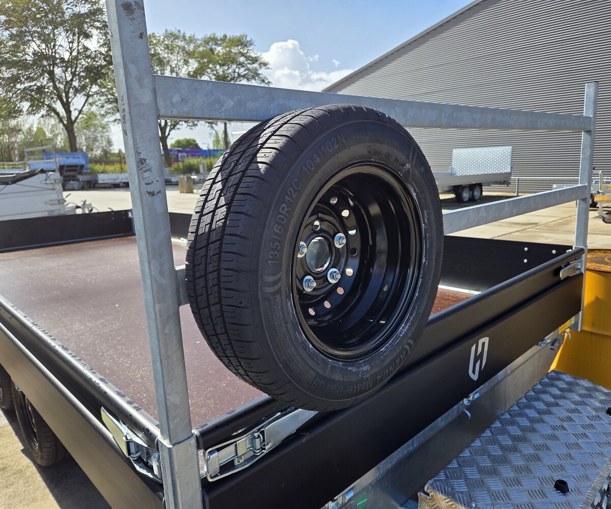Complete luchtband 185/60R12 met 5 gaats zwarte velg.