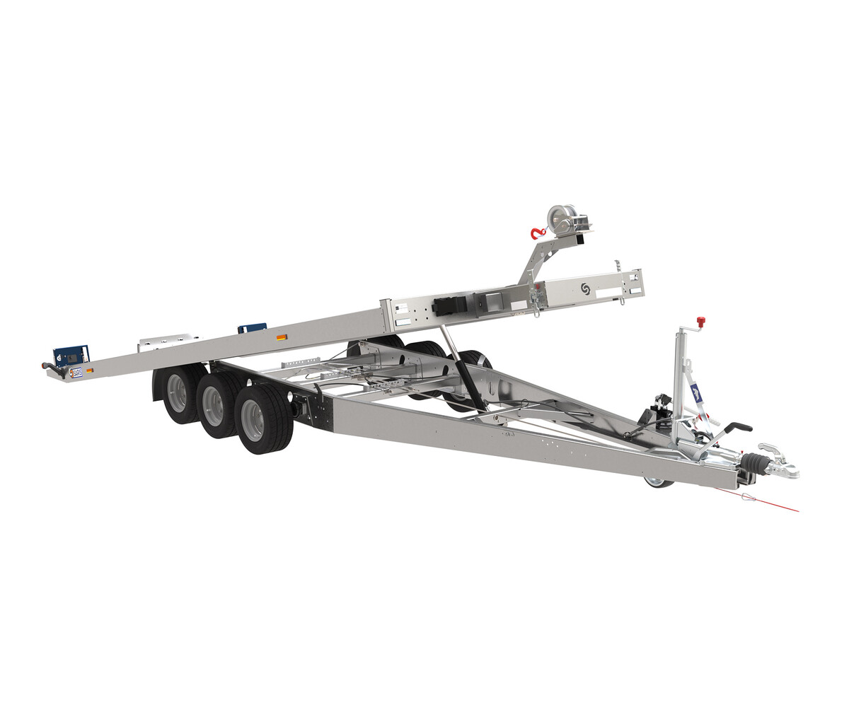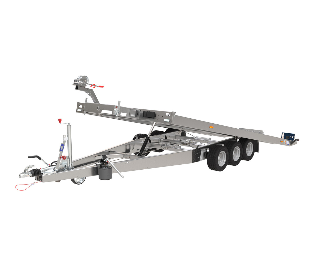 Het volledig gelaste frame met kokerprofielen zorgt voor maximale stevigheid en duurzaamheid. Over de volledige lengte zijn bindgaten en bindpunten aanwezig voor het goed vastzetten van de lading. Daarnaast is de trailer uitgerust met een zwaar neuswiel (500 kg), een lier met liersteun en 10 inch wielen.