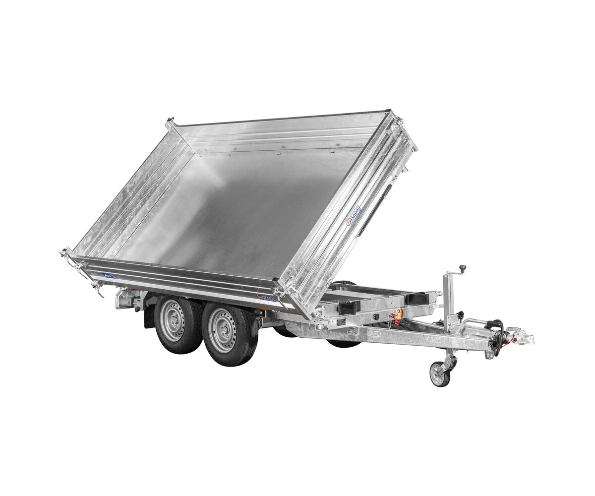 De kipper is uitgevoerd met 40cm hoge, dubbelwandige stalen zijborden, wat zorgt voor extra stevigheid en een lange levensduur. De volledig gegalvaniseerde stalen vloer van 3mm maakt hem bestand tegen intensief gebruik en zware belasting.
