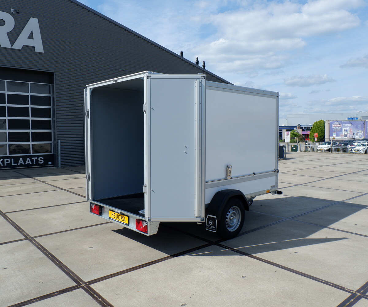 Deze gesloten aanhangwagen is ook verkrijgbaar in een hoogte van 150cm. Daarnaast ook te voorzien van een zijdeur of oprijklep. Andere veelgekozen opties zijn steunpoten, bindrails en een reservewiel. Neem contact op voor de diverse mogelijkheden.