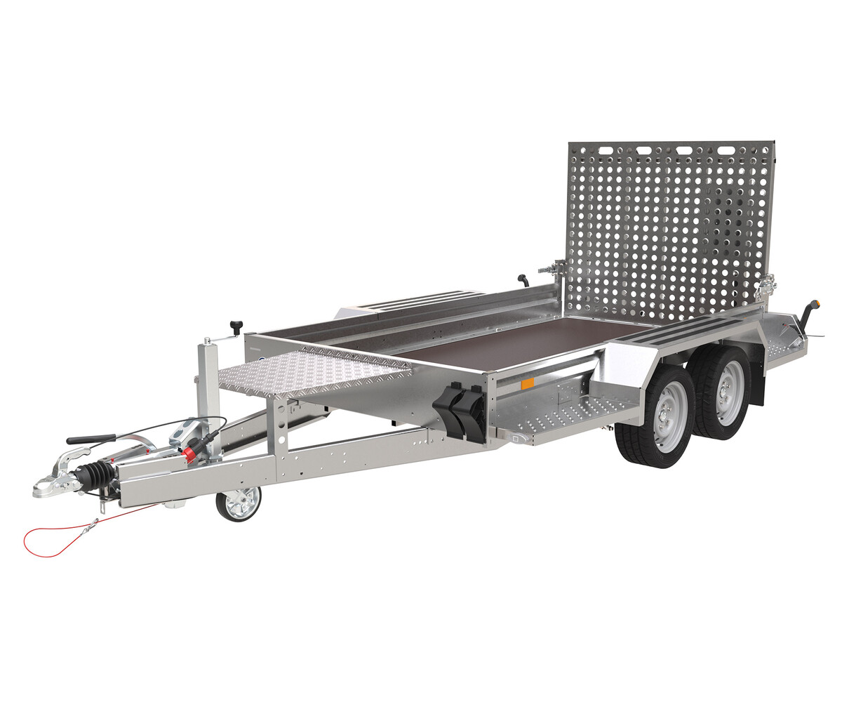 De machinetransporter is voorzien van een volledig gelaste frame van kokerprofielen. Dit zorgt voor maximale stabiliteit, ideaal voor het vervoeren van minigravers, shovels of ander zwaar materieel.