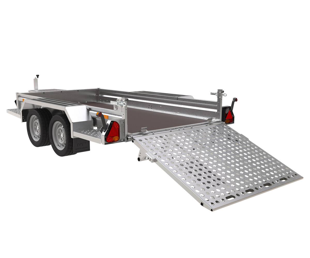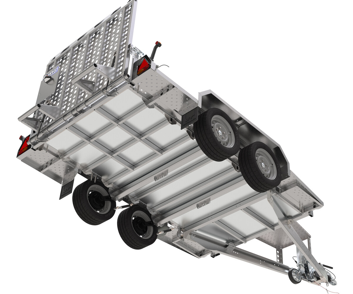 De machinetransporter is voorzien van een volledig gelaste frame van kokerprofielen. Dit zorgt voor maximale stabiliteit, ideaal voor het vervoeren van minigravers, shovels of ander zwaar materieel.