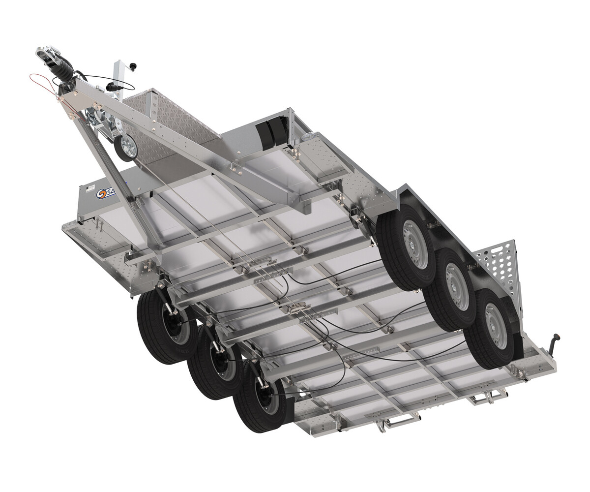 De machinetransporter is voorzien van een volledig gelaste frame van kokerprofielen. Dit zorgt voor maximale stabiliteit, ideaal voor het vervoeren van minigravers, shovels of ander zwaar materieel.
