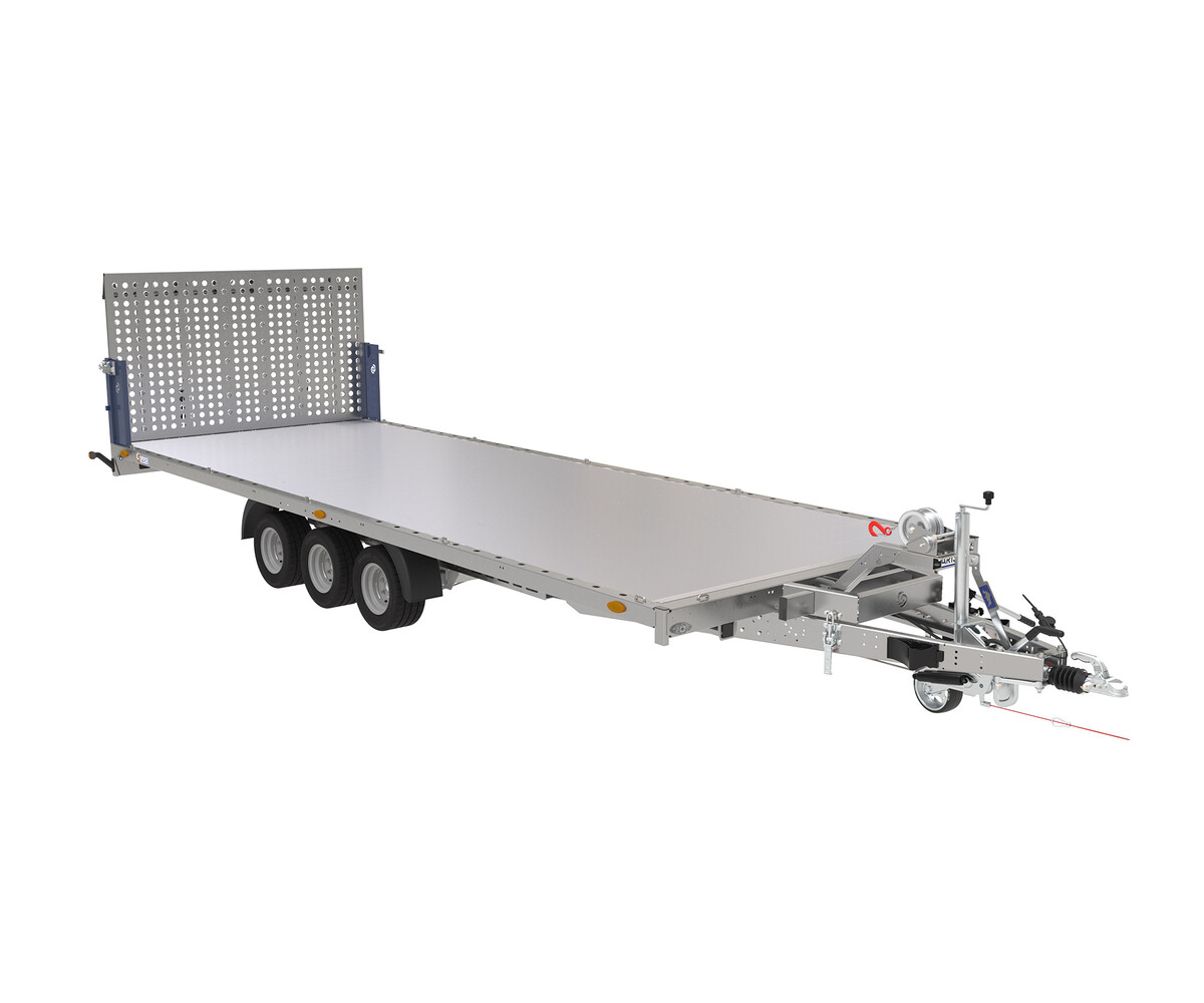 Het volledig gelaste frame uit kokerprofielen garandeert maximale stevigheid en duurzaamheid. Standaard is de trailer voorzien van een 15mm houten vloerplaat, optioneel leverbaar met een aluminium klikprofielvloer. Over de volledige lengte zijn bindgaten en bindpunten aangebracht voor optimale ladingzekering.